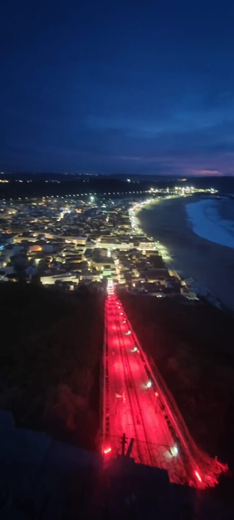 Oberhalb des Strandes thront auf einem 110 Meter hohen Felsplateau der Ortsteil Sítio. Richtig positioniert kannst du nahezu einen 360-Grad-Panoramablick genießen, über die Dächer von Nazaré, entlang des Praia da Nazaré, hinweg über das Lighthouse zum Praia do Norte. Mit einer Standseilbahn bekommst du für kleines Geld die Chance, einfach und schnell vom Nazaré Beach auf das Felsenplateau zu kommen. Es gibt jedoch auch Treppen aus Kopfsteinpflaster, die über die Jahre hinweg zwar teils abgesenkt, jedoch noch gut begehbar sind.