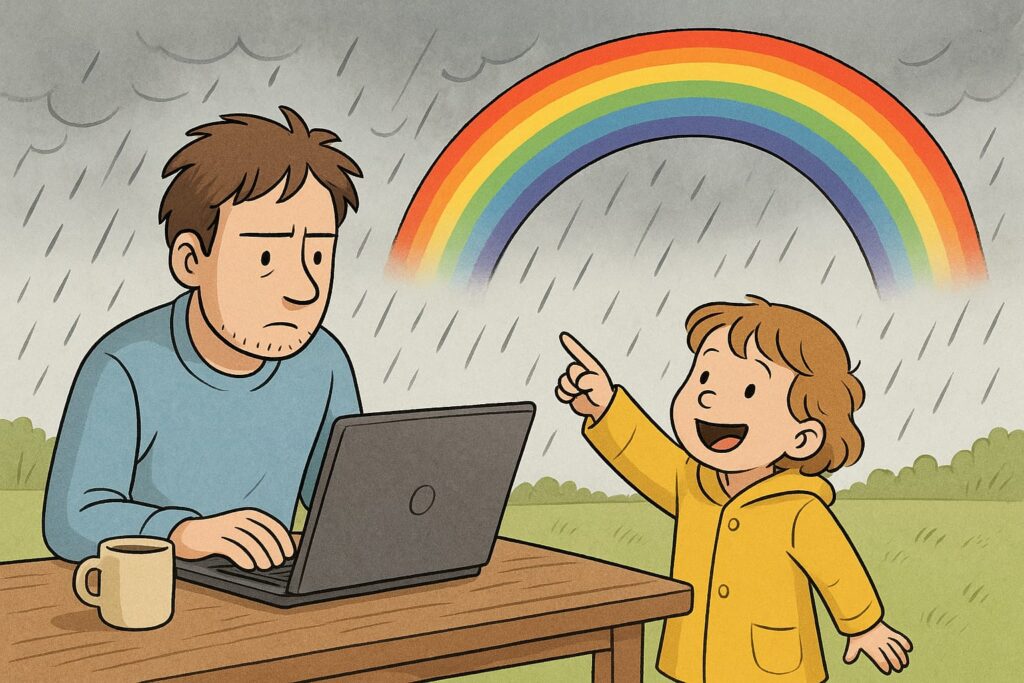 Zitat von Alice Nkom: „Die Arbeit läuft dir nicht davon, wenn du deinem Kind einen Regenbogen zeigst. Aber der Regenbogen wartet nicht, bis du mit der Arbeit fertig bist.“ Dieses Zitat bringt den Geist der Workation auf den Punkt – es geht darum, Arbeit und Leben besser in Einklang zu bringen.